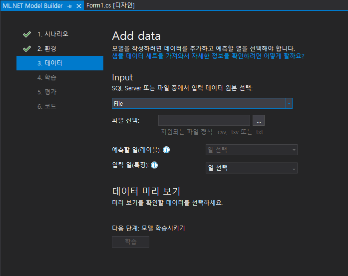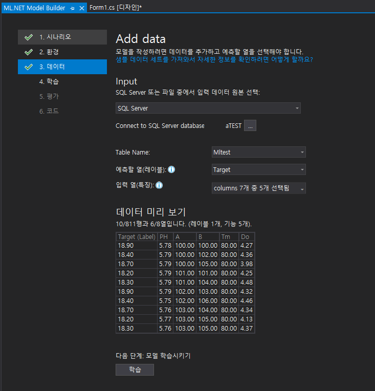 ML.NET MSSQL 연동 [5] (0) 2020.12.01 ML.NET MSSQL 연동 [4] (0) 2020.11.24 ML.NET MSSQL 연동 [3] (0) 2020.11.23 ML .NET MSSQL 연동 [2] (0) 2020.11.23