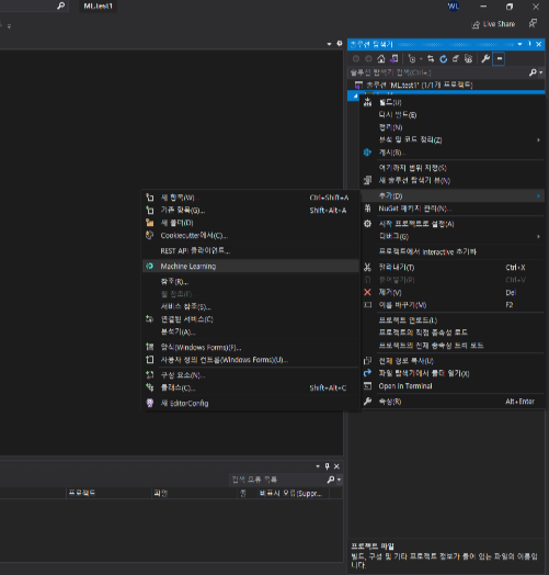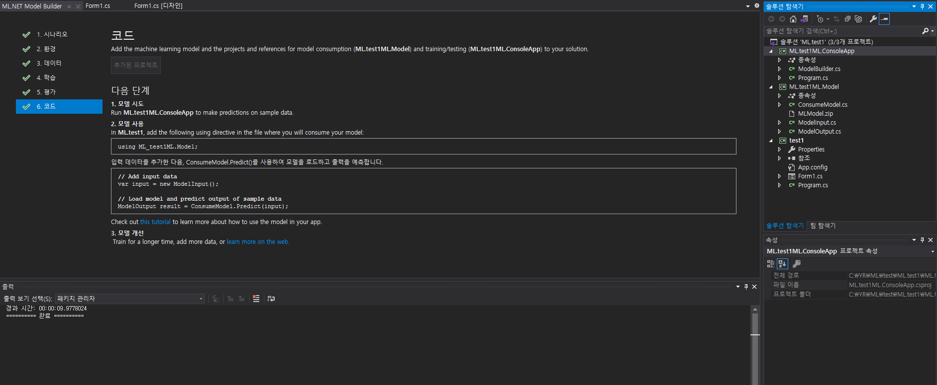 왼쪽 추가된 ML.Model 프로젝트 중 zip파일이 보이는데 이것은 SQL Server에서 가져온 데이터다.