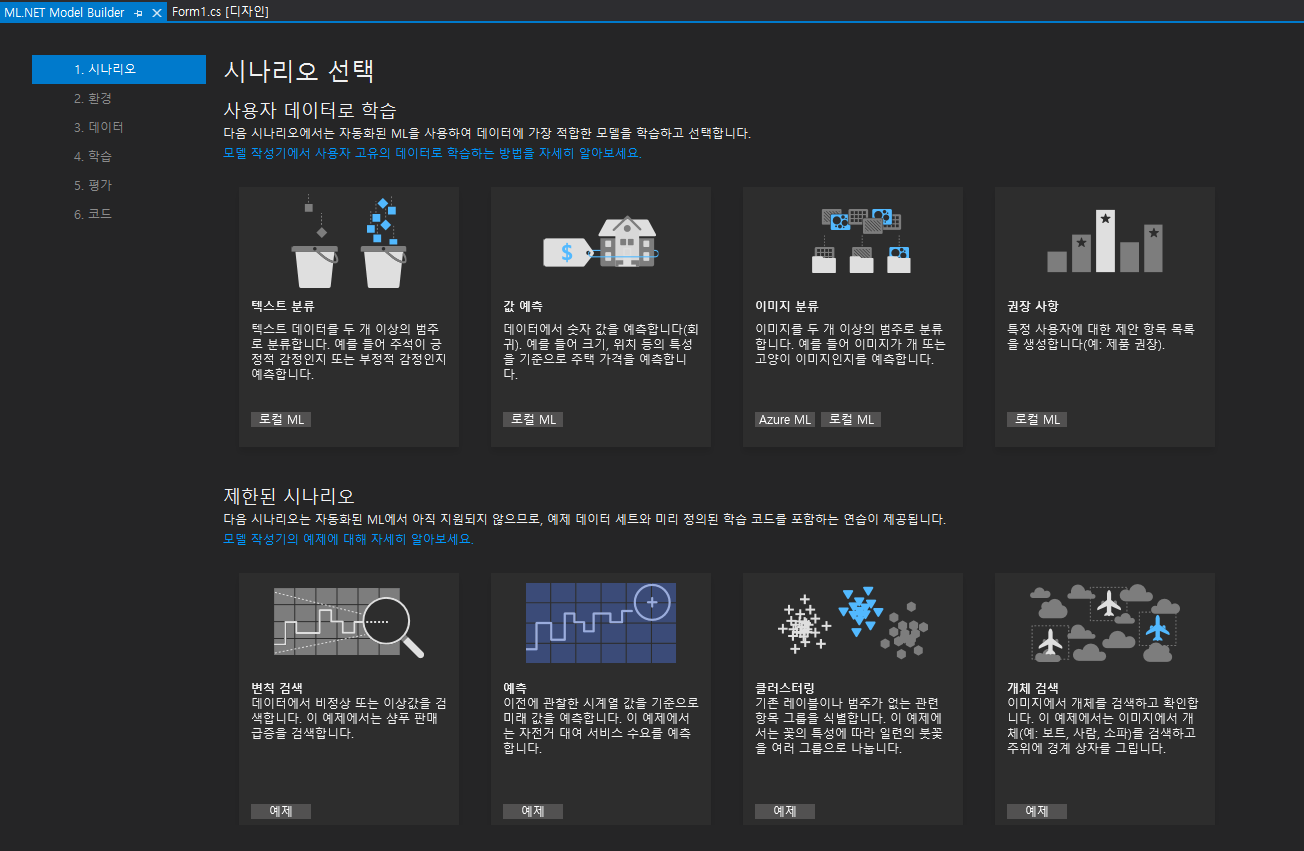 나에게 맞는 시나리오를 선택한다. 시나리오에 따라서 학습모델이 자동으로 선정된다.
