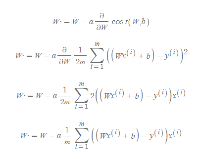 위에서 풀어보았듯이, 경사하강법 알고리즘의 수식은 아래와 같이 나온다.