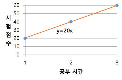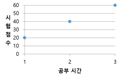 우리가 앞에서 그렸던 공부시간과 시험 점수 그래프에서